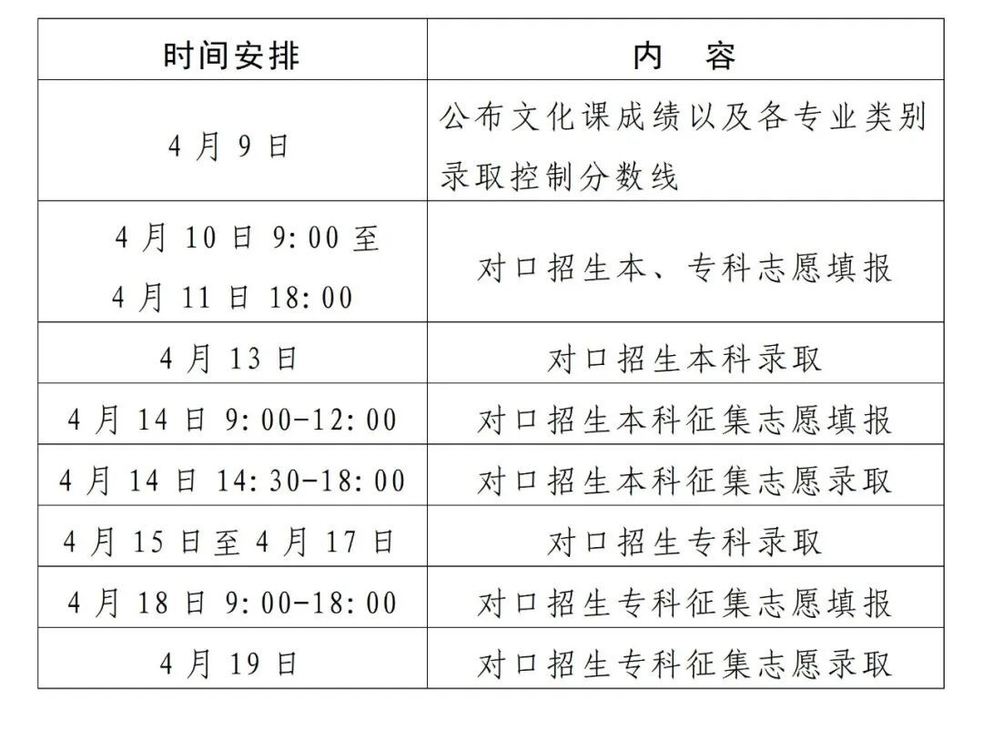 4月15日至4月19日进行对口招生专科录取。